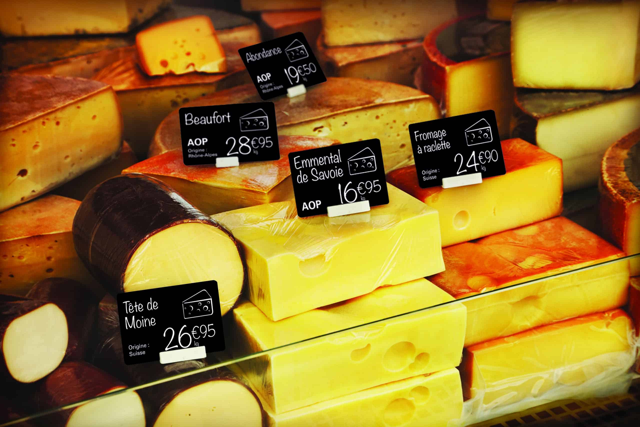 Une signalisation claire est un outil de vente important, en particulier pour les clients qui ne sont pas familiers avec les différentes variétés que vous pouvez proposer. Et s’ils ont besoin d’être guidés, c’est là que les étiquettes de présentation entrent en scène. Besoin d’indiquer le nom, le type de fromage ou toute autre information sur l’origine de vos produits ? Mettez en place une solution d’étiquetage. Avec Edikio Price Tag, pas besoin d’un « Munster » pour créer ses propres étiquettes ! Elles sont :