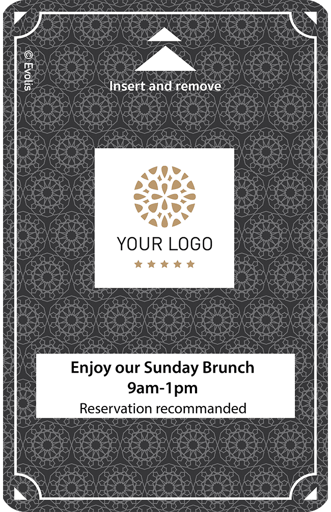 Rendez plus visibles les services de votre établissement grâce à des informations personnalisées directement imprimées sur la carte d’accès à vos chambres. Vous invitez ainsi vos clients à découvrir les offres dont ils n’ont pas encore bénéficié.