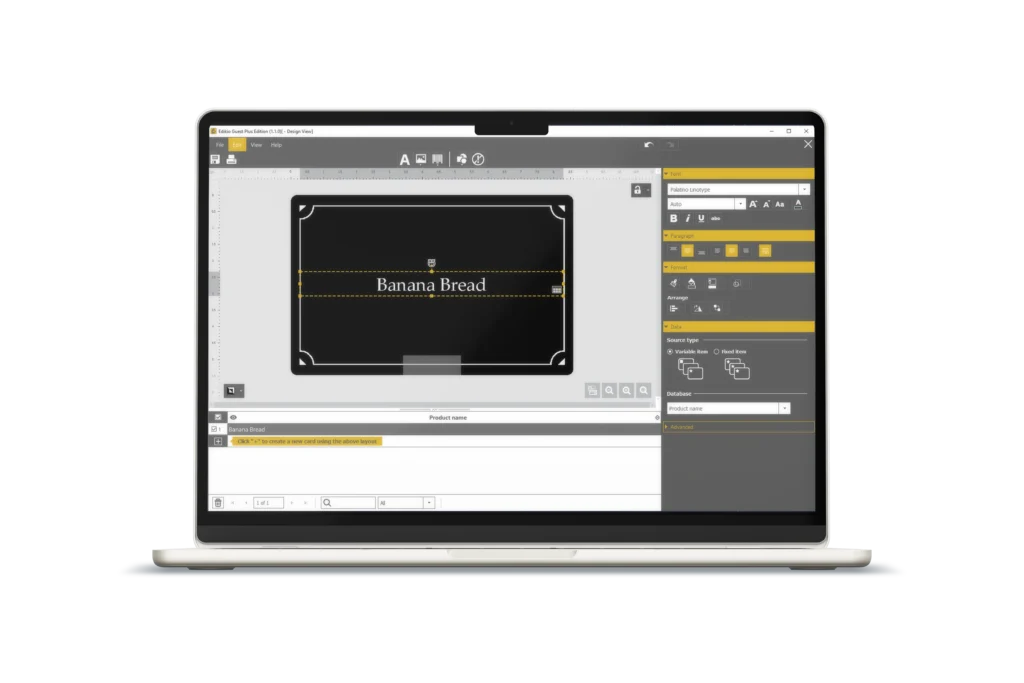 • L’affichage simultané de la liste de vos produits et du rendu de vos étiquettes, qui se mettent à jour automatiquement dès qu’une donnée est modifiée