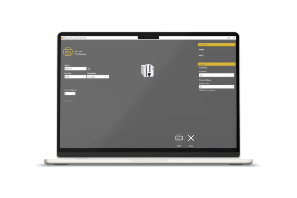 Compacte, l’imprimante Edikio Access Guest est conçue pour vous faciliter l’impression simple face d’étiquettes de buffet au format carte de crédit. Sa taille et son design lui permettent de s’intégrer facilement dans votre environnement de travail, elle ne prend pas plus de place qu’une feuille A4. L’imprimante bénéficie de l’expérience et du contrôle qualité éprouvé par nos équipes. Elle vous garantit un fonctionnement et un résultat optimaux.